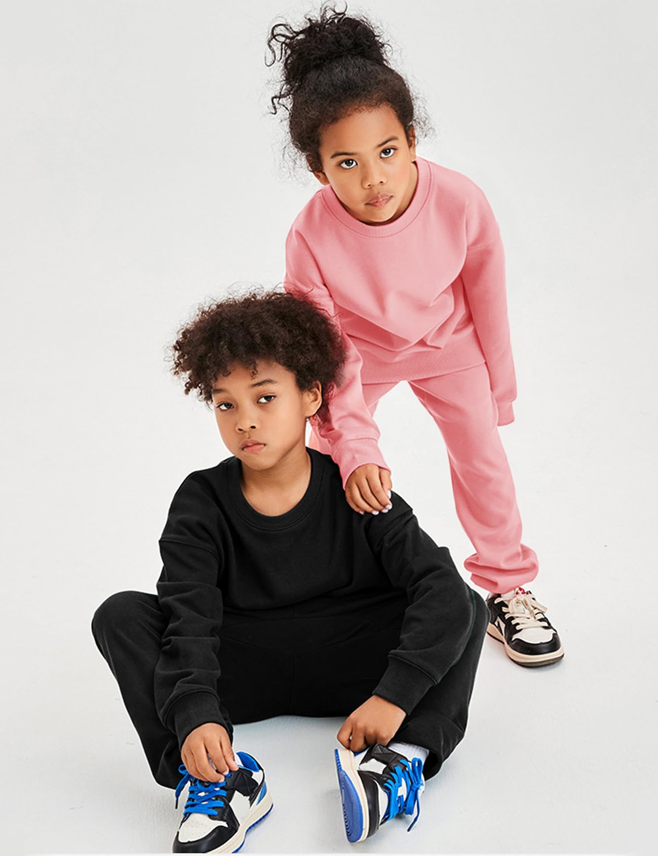 - [Kids Clothing Set] Boys girls fleece pants set includes a long sleeve crewneck sweatshirt with ribbed cuffs and hem, matching with elastic waist sweatpants. The kids tracksuit provides unrestricted movement and all-day comfort for your child during active play, making it a fall winter wardrobe essential