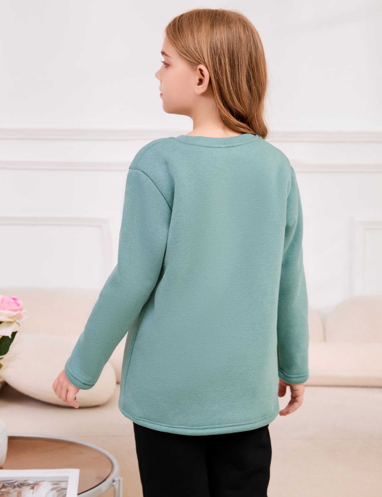 Flygo Girl's Sherpa Lined Fleece Sweatshirt Crewneck Kids Pullover Thick Thermal Sweater Winter Warm Tunic Tops