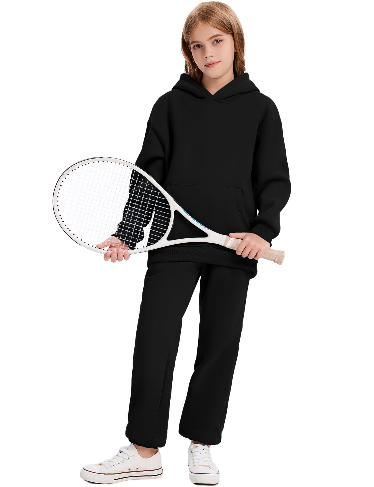 - Unique features: Girls Hoodies--hooded pullover sweatshirt, casual full long sleeve top, drop shoulder, ribbed sleeve cuffs and hemline, kangaroo pocket; Jogger Sweat Pants--drawstring high waisted pants, loose fit, baggy joggers with two side pockets. The clothing set is a fashionable choice for school, play dates, or casual outings