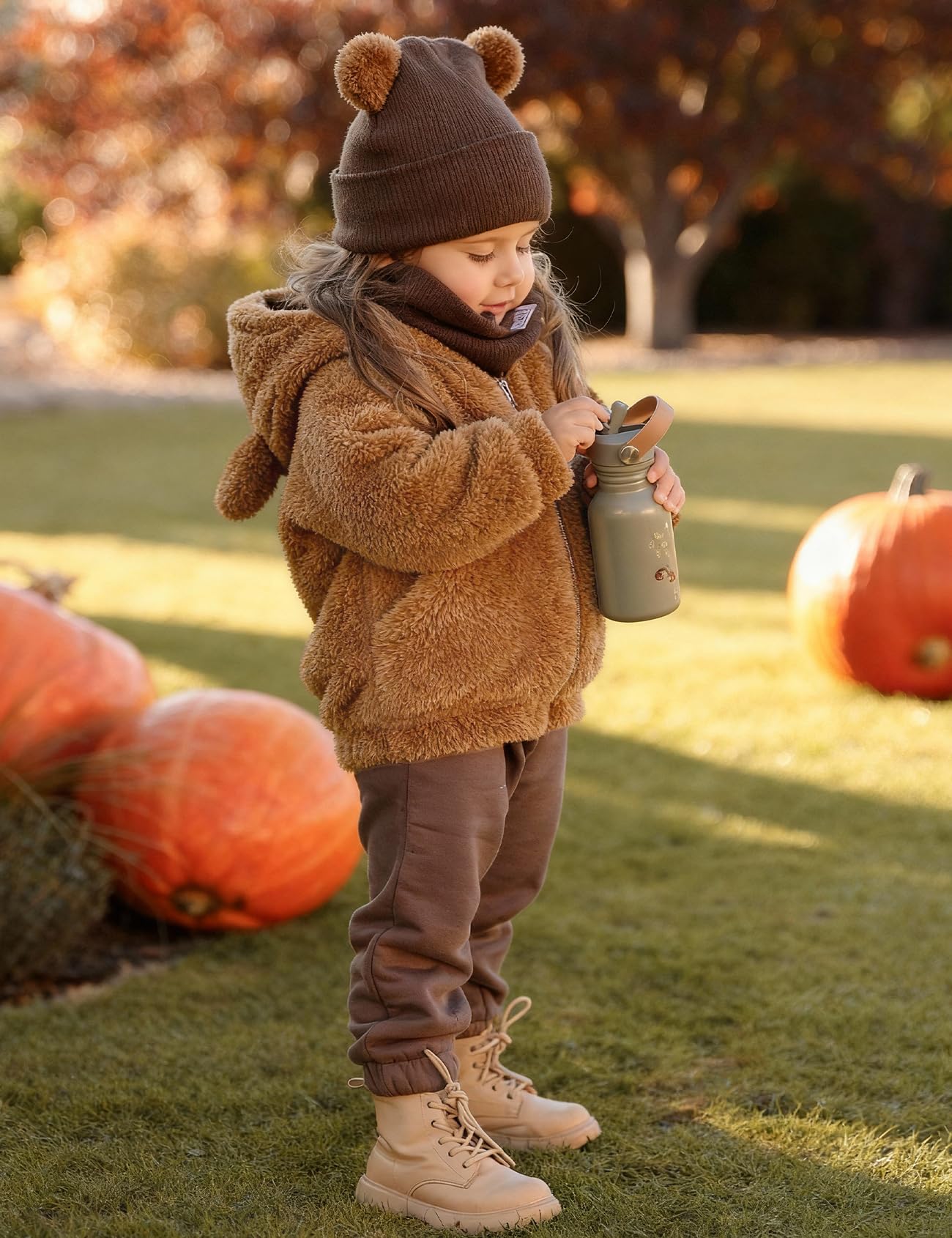 Flygo Girls Boys Fleece Hooded Jacket Unisex Toddler Sweatshirt Bear Ear Zip Up Sweater Outwear Hoodie