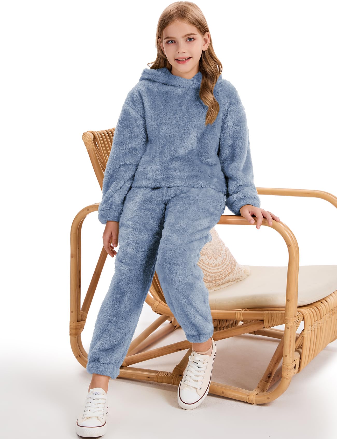 - [Versatile two-piece outfits set]: Can be as sweatshirt or an outfit, parts together and separately, not too cropped, fits great, plenty long enough and able to pull up high, so bellies don't have to hang out. The fuzzy pants set is also perfect for school functions, and for cold days or nights.