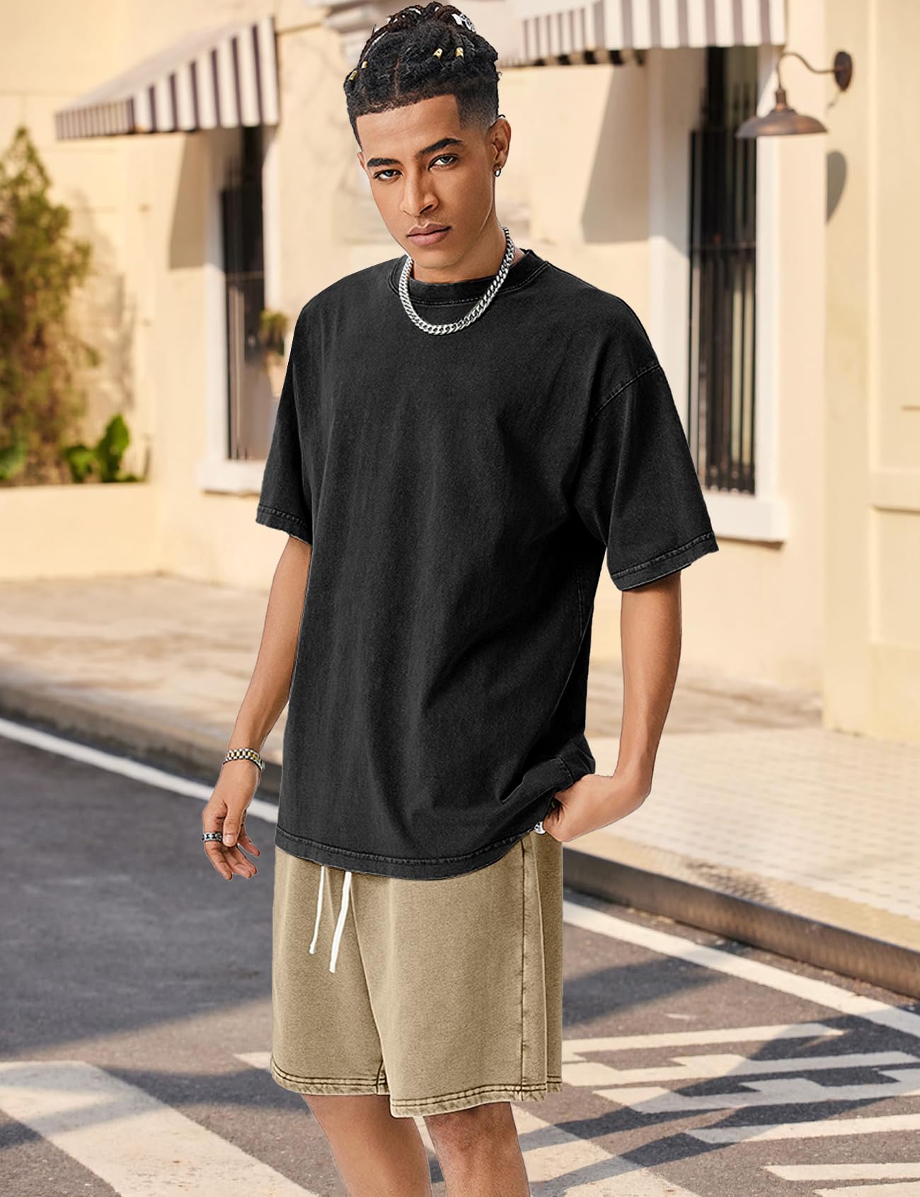 - Stylish 3-Pack Set: This set includes three versatile, baggy jogger shorts in timeless colors. Featuring a unique wash and wax-dye process, these shorts boast a retro, distressed look that’s both trendy and timeless. Made from 290gsm heavyweight pure cotton, they offer a premium texture and are a must-have for your summer wardrobe