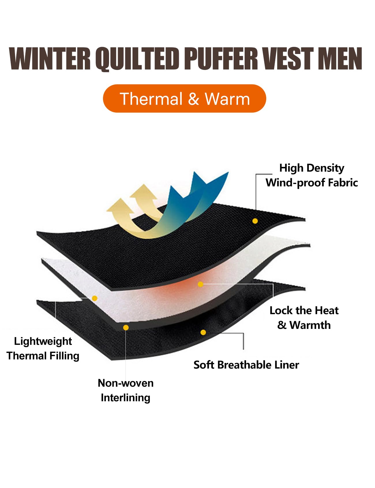 - ăLightweight&WarmăMens winter puffer vest jacket, with soft thermal filling, designed for lightweight warmth, provide great heat retention and keep you cozy during cold months, casual outdoor vests for men, perfect for spring, fall, winter and in-between weather.