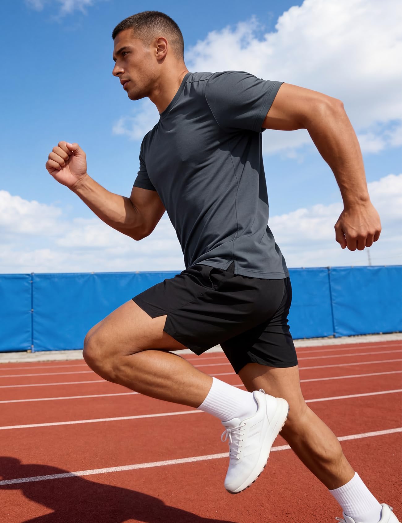 Flygo Mens Workout Shirts Athletic Running Gym Short Sleeve T-Shirts Quick Dry Sun Protection Cooling Active Tee Tops