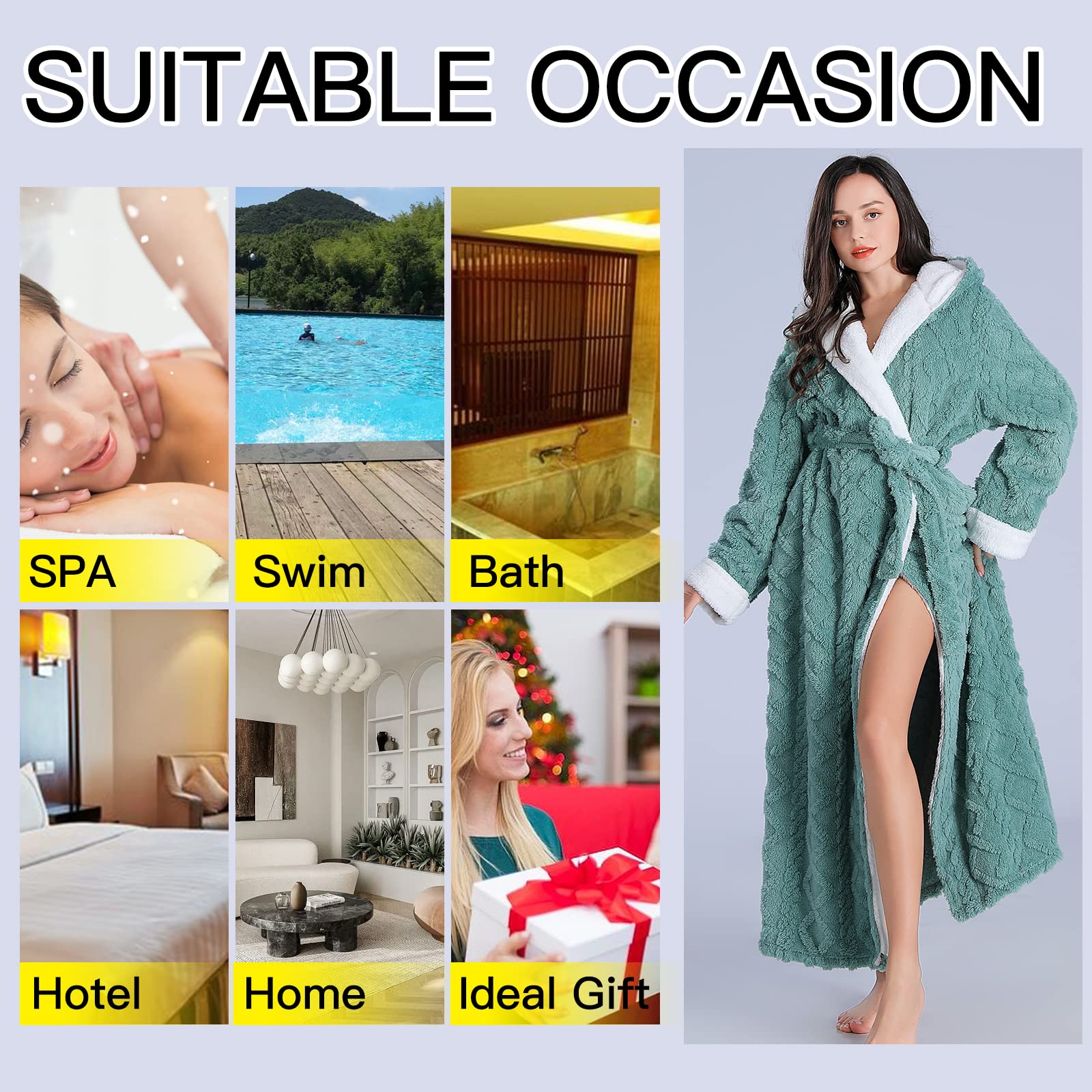 - LUXURIOUS & FUNCTIONAL: Our extra plush bathrobe with hood is made of premium flannel fleece, designed to look just as luxurious as it makes you feel, our long robes for women are the ideal choice for wearing while getting ready, after the beach, pool or hot tub, or right after a relaxing shower. Also a ideal long bathrobe for spa, a wrap housecoat for women lounging around the house or a warm sleepwear for women at night, soft and comfortable.