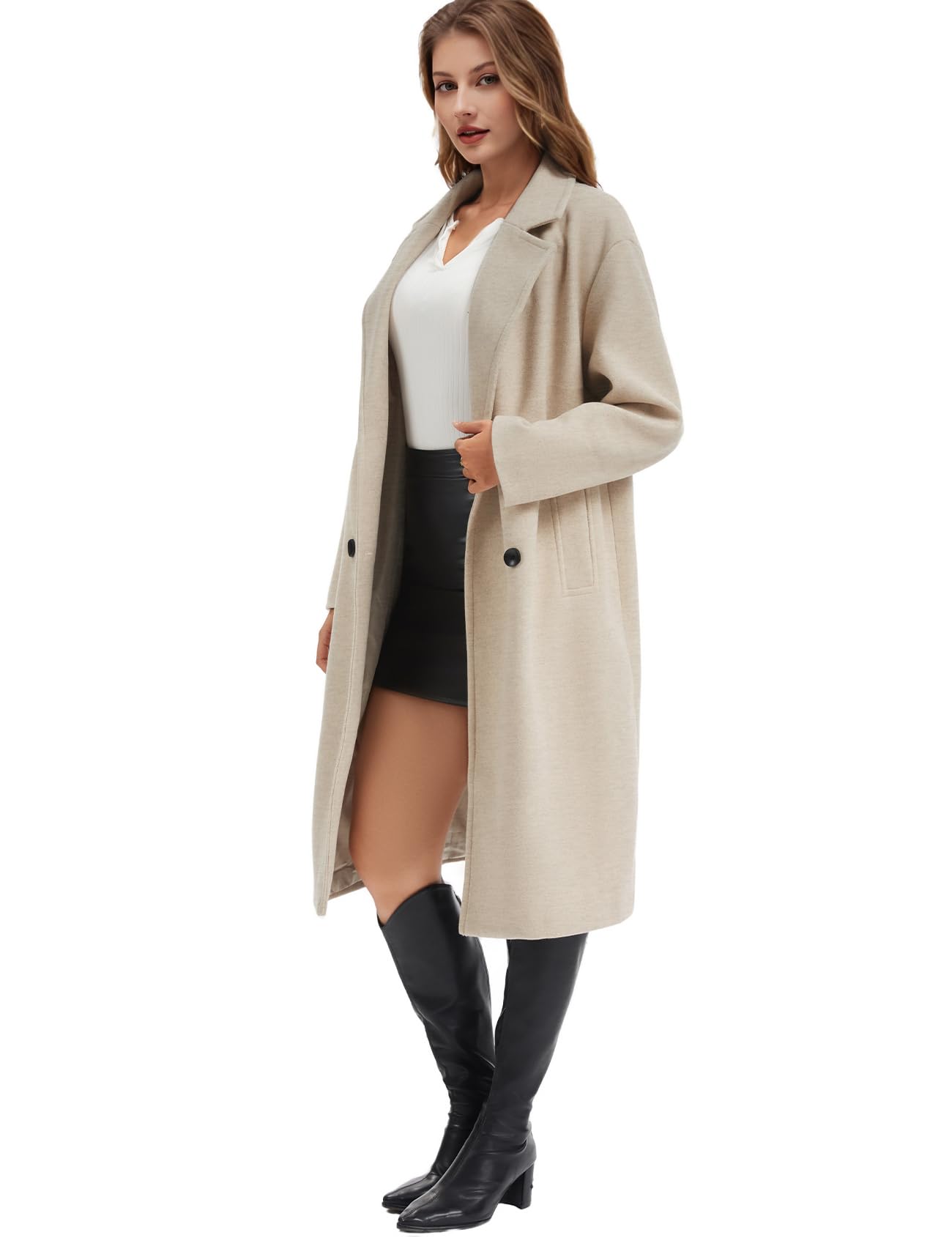 - Design: Winter trench coat women, features double breasted design and notched lapel collar, knee length, solid color, long coat women. Two side entry pockets are convenient for you to warm hands or hold small essentials like keys, a phone, or some cash